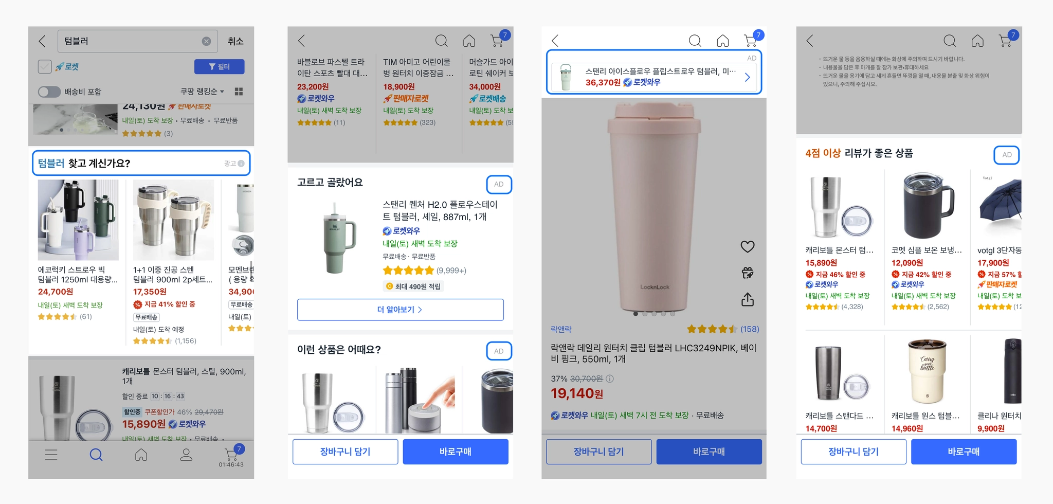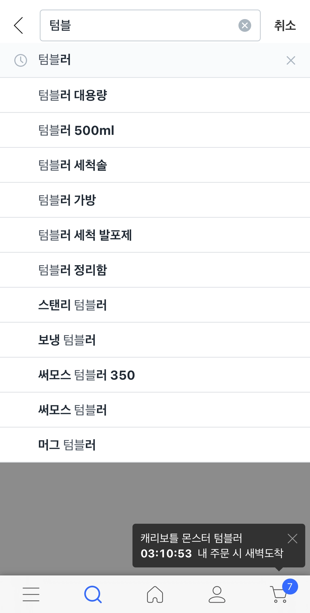 쿠팡 검색 창 내 ‘텀블러’ 키워드